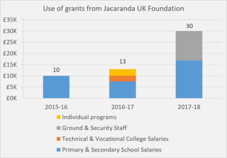 Our total grants have increased annually since we were founded in 2015. Consequently, we have been able to fund increasing amounts of teachers' salaries at the Jacaranda School for Orphans